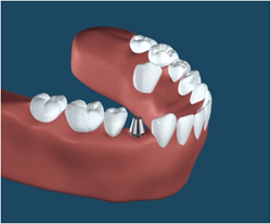 インプラントの上部に粘膜を貫通する部品を装着し粘膜を縫合します。可能であれば仮歯を装着します。 (手術を1回で終わらせる1回法の場合) |