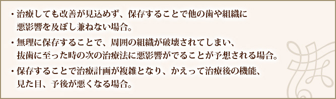 当院で抜歯、インプラント治療をお勧めする場合は、以下の場合に限ります。