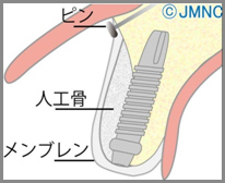 骨補填材を設置し、その上に人工膜を置いて骨の再生スペースを確保して