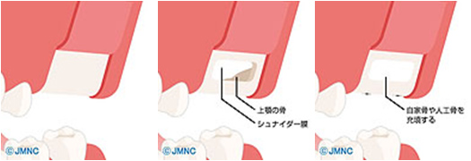 上顎のインプラント治療において行う骨の造成法です。