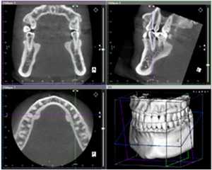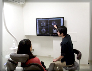 3次元での診断により、従来のエックス線では難しかった、口腔内の重要な組織や血管・神経の
